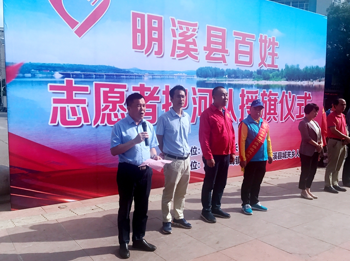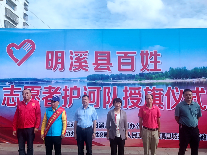 2019年10月15日,明溪县河长制办公室在河滨公园拱桥广场,举办百姓志愿者护河队授旗仪式。县政府蔡丽青副县长发表致辞;三明市河长办专职副主任、水利局副局长李朝阳到会;县百姓志愿者护河队(全国道德模范提名奖)张旺文代表发言。