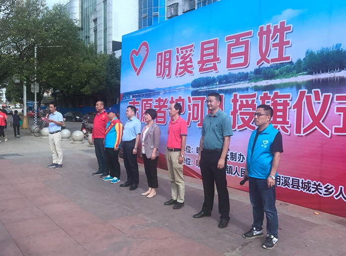 明溪县遵照市河长制办公室的工作部署,在全县迅速组建10支百姓护河队,护河志愿者382人。为营造氛围,打好"碧水、蓝天、净土"保卫战,推动工作开展,明溪县对百姓志愿者护河队开展授旗仪式。