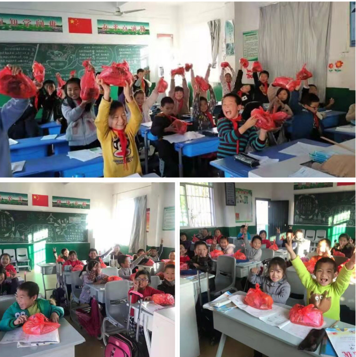 学生们收到礼物后开心的脸庞