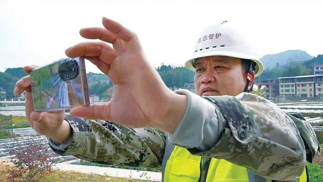 湖美生态综合管护队队员利用手机APP智慧监管(三明市融媒体中心供图)
