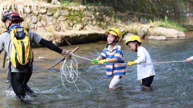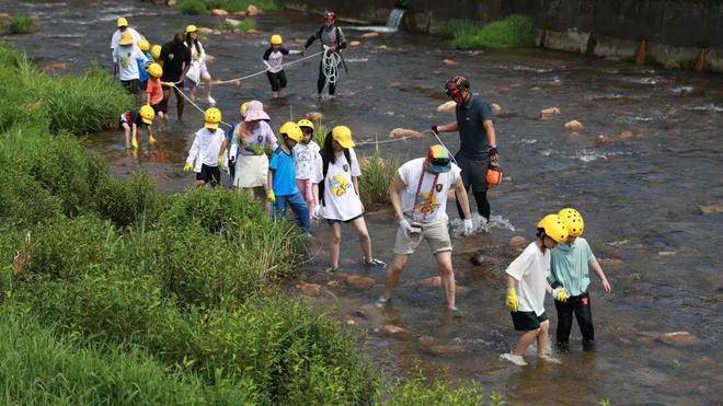 小小河长们淌过溪流巡查河道,沿途学着检测水质情况,清理河道垃圾。