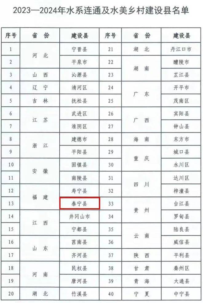 今年7月份以来,三明市委、市政府高位推动水系连通及水美乡村项目申报工作。经过全省10个县激烈的角逐,泰宁县成功跻身福建省2023-2024年水系连通及水美乡村建设县推荐的行列,代表福建参加水利部、财政部组织的先行示范建设县审核确认工作,最终成功入选。
