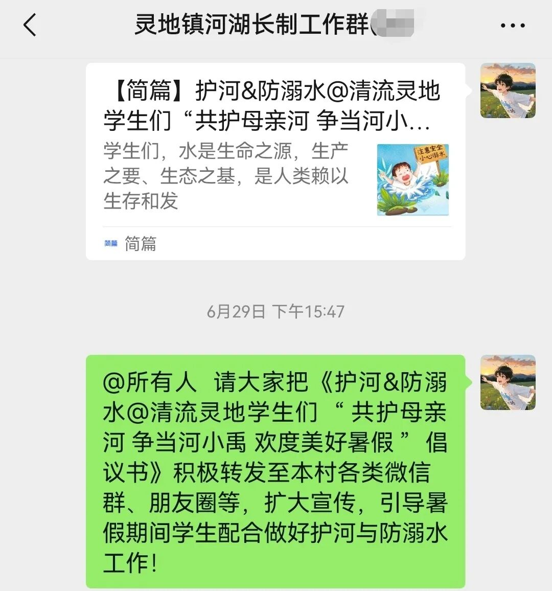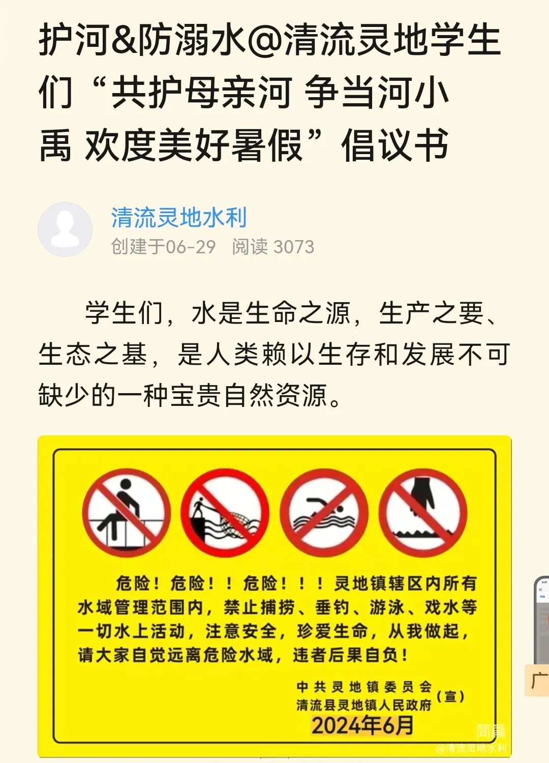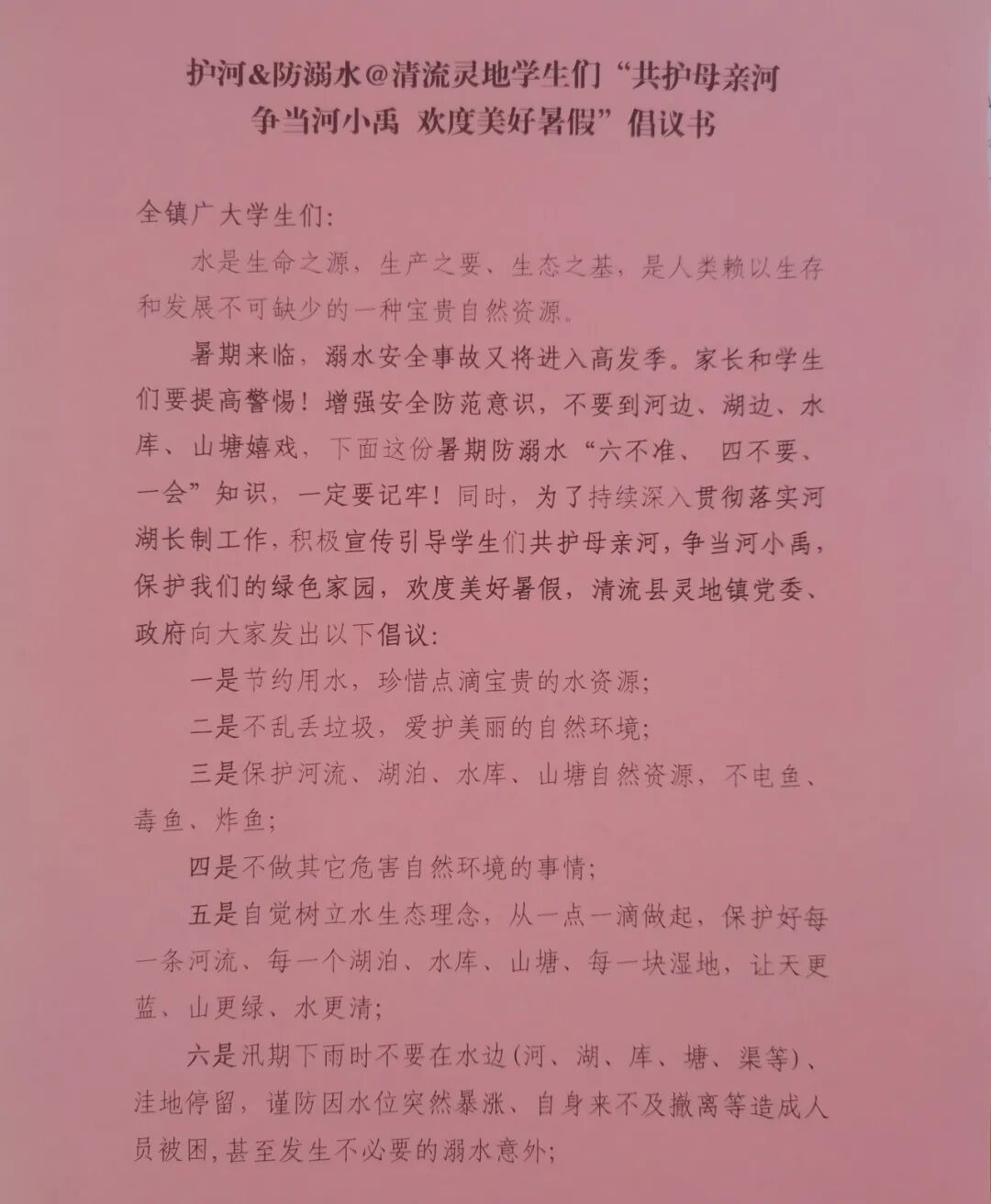 红领巾河小禹志愿者们发扬艰苦奋斗精神,用他(她)们的实际行动来全力支持和参与灵地镇河湖保护、节约用水及暑期学生防溺水工作,旨在秉承和倡导“爱护河湖光荣、破坏环境可耻、节约用水、珍爱生命、预防溺水”的观念更加深入人心、见行见效,从而以点扩面带动家人、同学、朋友共同保护水资源、水环境、节约用水及做好暑期预防溺水工作,助力让“爱河、亲河、护河、节约用水、珍爱生命”成为灵地镇社会新风尚,共同保护灵地绿色家园,欢度平安美好暑假。