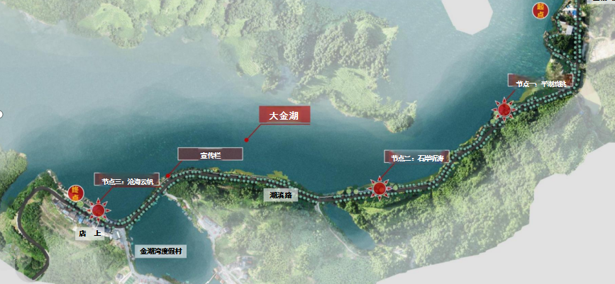 该项目位于大金湖沿线水际村,总投资1500万元,主要建设金湖湾内湖生态护岸、滨湖自行车道和沿线节点打造及绿化等工程,总长1.41千米。通过对金湖沿线内湖、村庄等生态修复,稳定岸坡,净化水质,防洪减灾,可有效保护金湖流域水生态和周边生态环境,提高金湖周边流域的水源涵养能力。